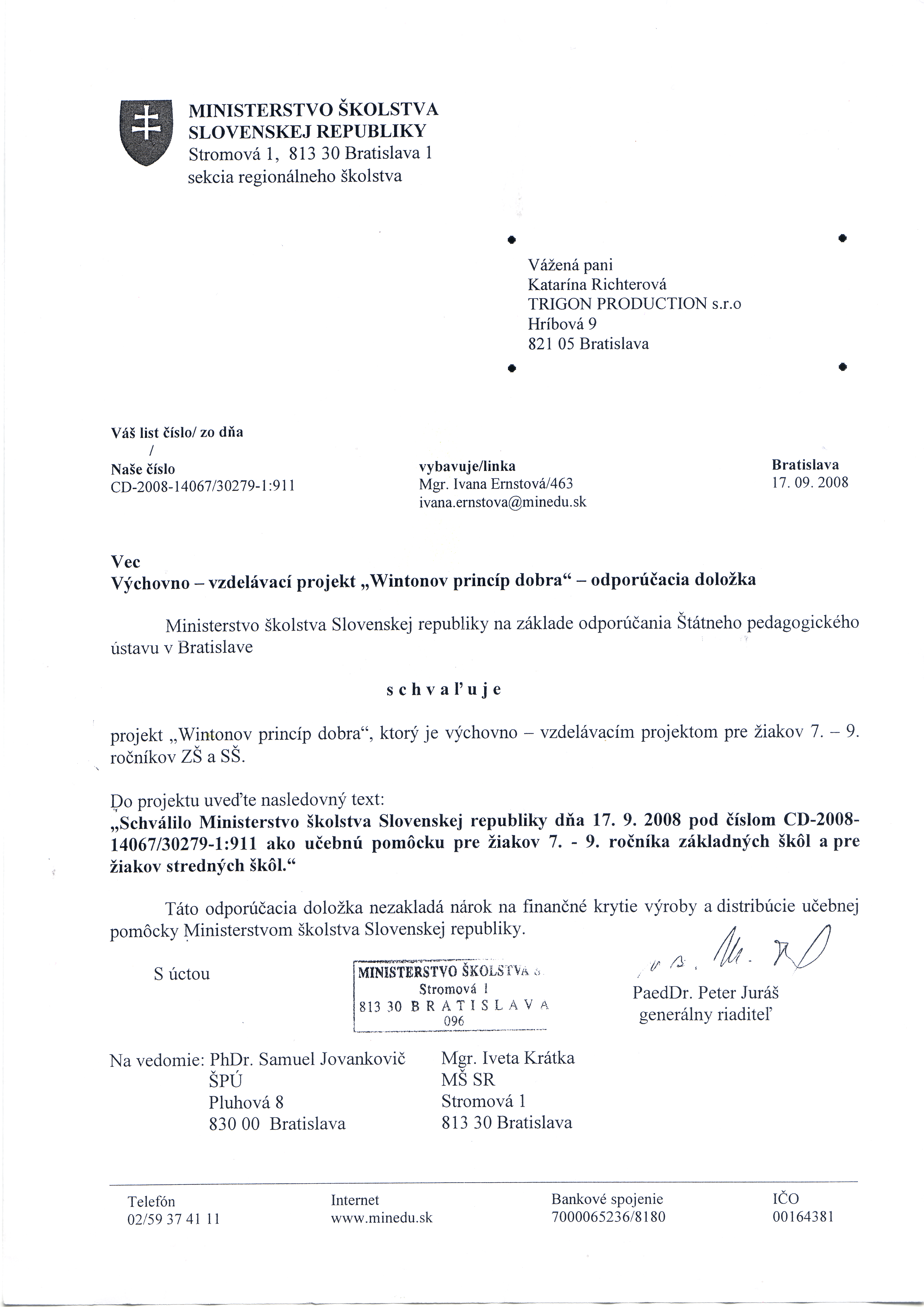 Projekt Wintonov princíp dobra odborne zastrešuje Dokumentačné Stredisko Holokaustu. Ministerstvo Školstva Slovenskej republiky pozitívne ohodnotilo projekt a odporúča základným a stredným školám.